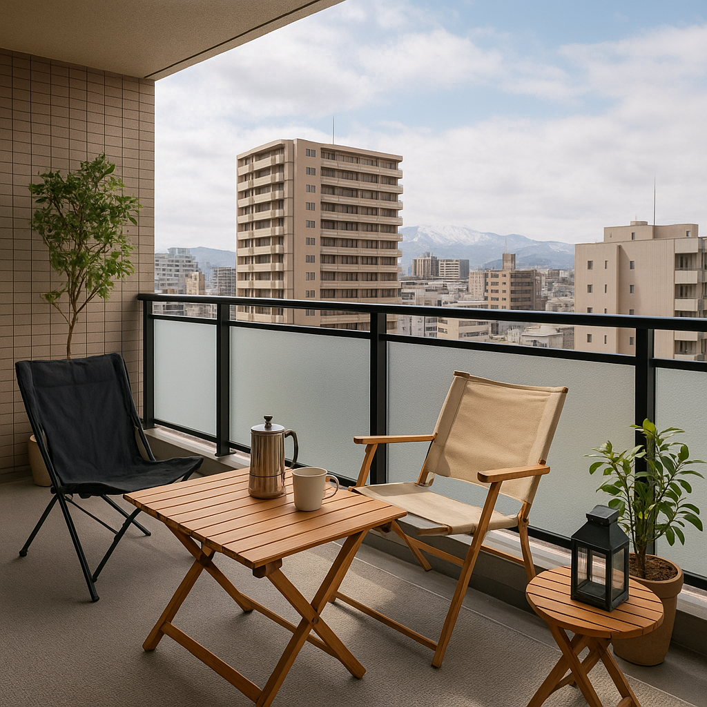 夜風にあたりながら温かい飲み物や、お酒を片手に静かに読書を楽しむ時間。ぼんやりと夜景を眺めるのも贅沢ですね。外に出かけなくても、バルコニーを少し工夫するだけで、日常の中にアウトドアの心地よさを取り入れることができます。