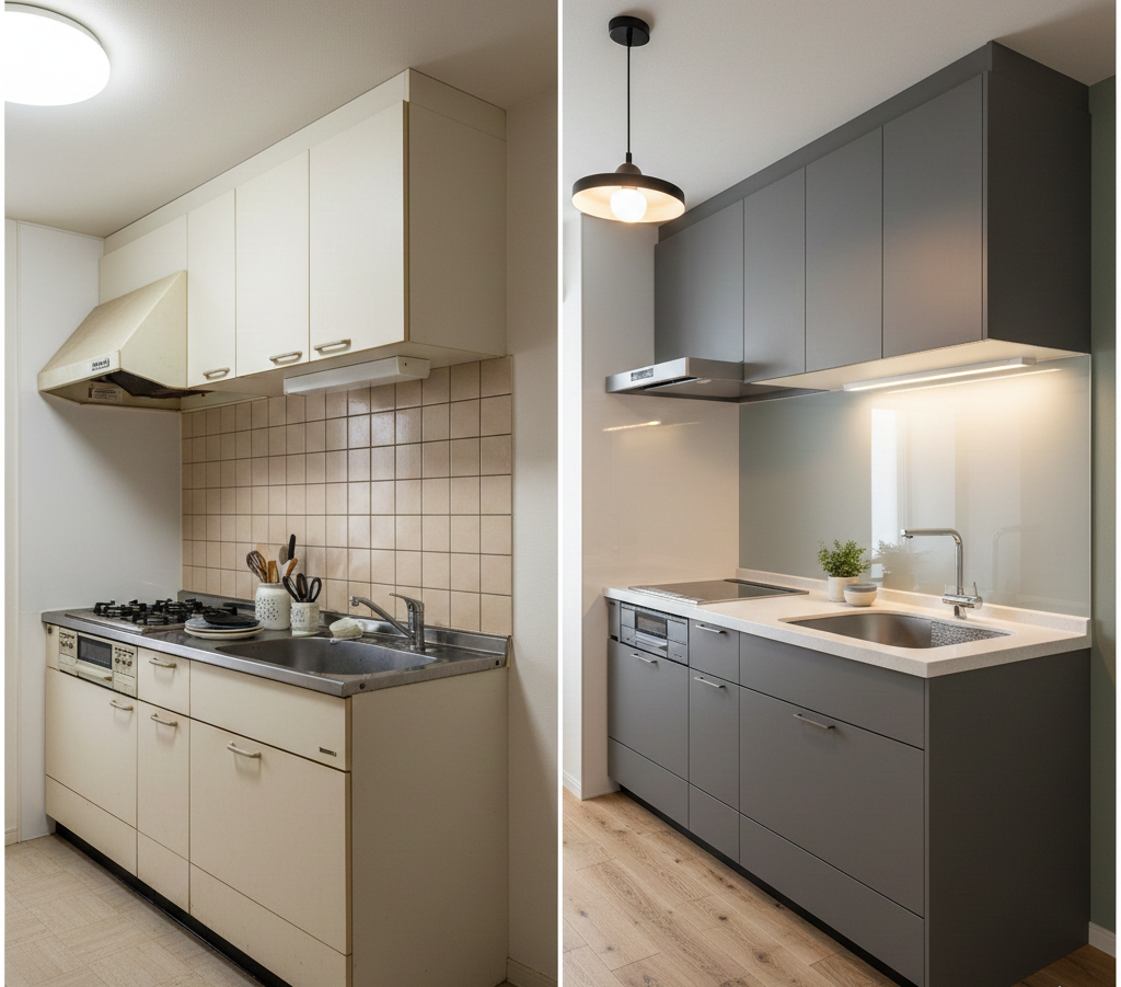 キッチンの交換だけであれば、最短で1日〜1週間程度で完了します。「仮住まい」を用意する必要がなく、今の生活を送りながら進められるのが魅力です。