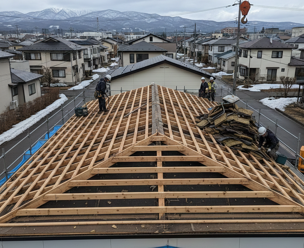 これまで、一般的な木造戸建て住宅(いわゆる4号建築物)の多くは、屋根の葺き替えなどの大規模な修繕を行う際、「建築確認申請」が不要でした。しかし、昨年の建築基準法改正により、リフォームのルールが大きく変わり、「既存の屋根材を剥がして、新しい屋根材を施工する(葺き替え)」という工事を行う場合、原則として「建築確認申請」が必要になったのです。