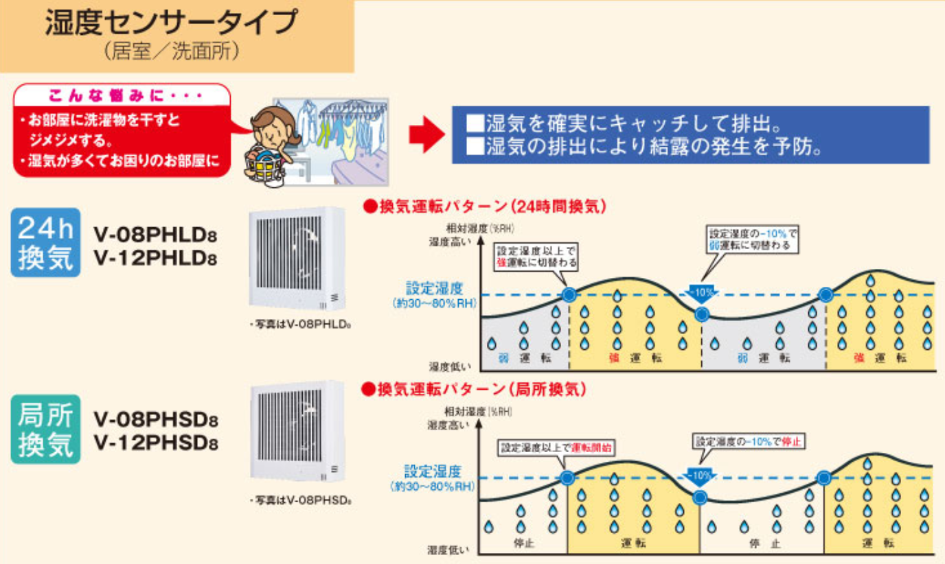 数あるパイプファンの中でも特におすすめしたいのは、「湿度を感知する機能(湿度センサー)」が付いているモデルです!。
