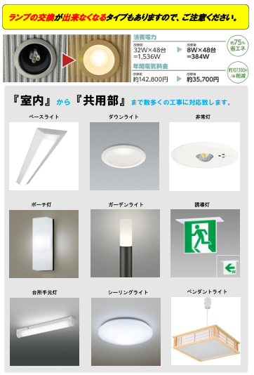 • 物件の印象アップ:LED特有のパッと明るい光は、入居者様への防犯・安心感につながります。古い照明器具を新調することで、物件全体の「管理が行き届いている感」を演出できます。