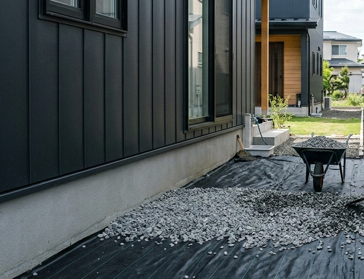 - 視覚的効果: 明るい色の砂利を選べば、家のまわりがパッと明るく清潔感のある印象に。
